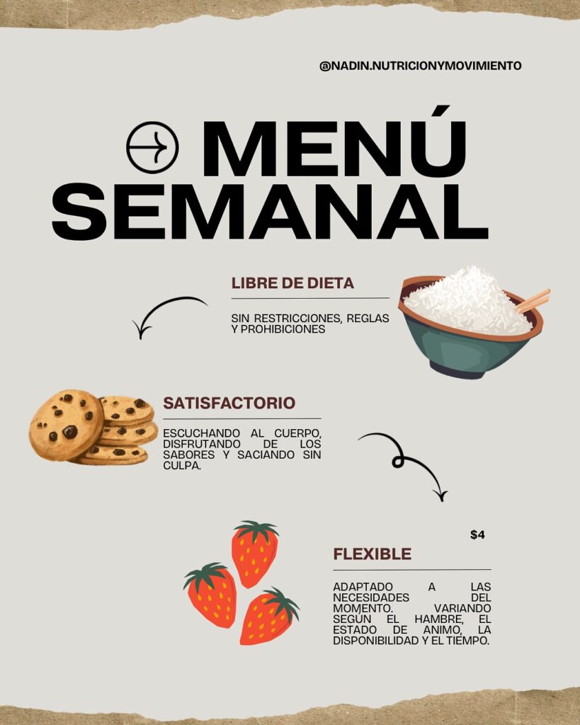 Un ejemplo de menú flexible, libre de restricciones, que se adapta a tu vida y no al revés. Ideal para reconectar con el placer de comer.